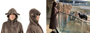 「オットセイ」エリアの入り口には、子ども用と大人用のオットセイを模したガウンを設置します。アシカ科の中では比較的耳たぶが長いことがオットセイの特徴です。長めの耳たぶと大きな目が付いた愛らしい雰囲気の暖かなガウンを着て、オットセイ気分で観察をお楽しみください。
