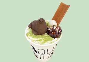 オットセイ型のマシュマロとホイップクリームをトッピングした抹茶ラテ。見た目も愛らしく“ほっとする”味わいです。
