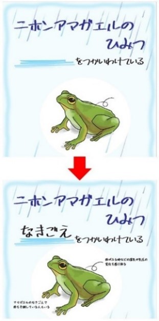 ③雨の日に読める!?不思議なパネルでニホンアマガエルの“鳴き声”を解説