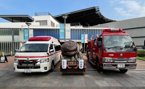 ※ 消防車と救急車は、練り歩きの一部区間でオオサンショウウオ山車を先導します。