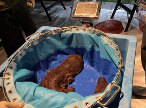 また、9月9日の「オオサンショウウオの日」当日には、毎年恒例となっている「測って!オオサンショウウオ」を開催します。京都水族館で一番大きなオオサンショウウオ(交雑個体)の全長と体重をお客さまの目の前で計測します。昨年は161cm、33.3kgを記録しましたが、今年はさらに大きく成長しているのか、その結果を間近でお楽しみください。