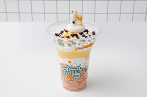 11月11日が記念日のチンアナゴとニシキアナゴをイメージしたパフェが登場。マンゴープリンと生クリームでオレンジと白の体色が特徴的なニシキアナゴをイメージしました。その上には、白い体に黒の斑点模様が特徴的なチンアナゴをイメージし、白黒のディッピンドッツをトッピング。かわいいマシュマロと一緒にお楽しみください。
