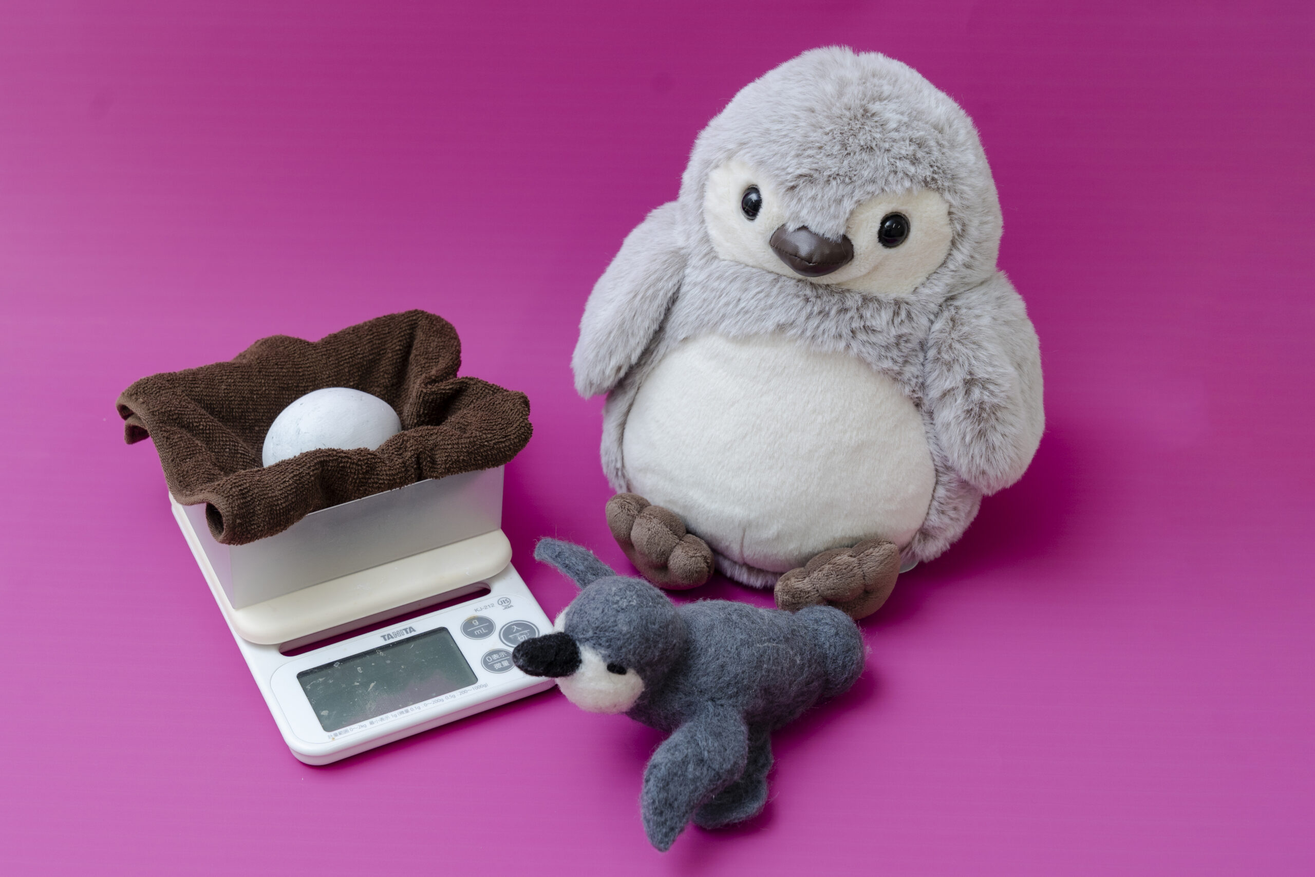 生まれたときから大きかった「うしわか(牛若通り)」、飼育スタッフの介助なしでは成長できないほど小さかった「ぽん(先斗町通り)」、標準的な成長をしてきた「せん(千本通り)」の3羽について、それぞれペンギンの卵、0日齢のヒナ、34日齢のヒナの重さを体験できる体験型展示を行います。手に取り、その重みを感じることで、それぞれの成長を体感することができます。さらに、3羽の現在の大きさを再現した等身大ペンギンパネルも登場。ご来館の記念にペンギンたちとの撮影をお楽しみください。