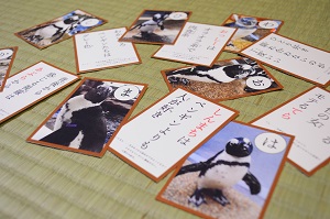 京都水族館にいる59羽のペンギンの個性やペンギンの生態について書かれたかるたで遊ぶことができる体験プログラムです。例えば『「し」しんまちはペンギンよりも人が好き』など、思わず誰かに話したくなるようなペンギンの話を知ることができます。